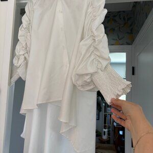 High Low Button Down Puff Sleeve Shirt