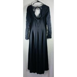 Features: V Neck, High Low Hem, Lace, Long Sleeves, Sheer Lace Sleeves, Lace Bodice, Fully Lined, Back Cut Out, Taffeta Skirt, Solid Color