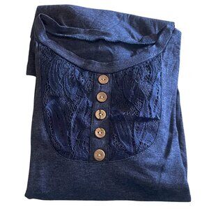 - One side accented buttons design, relax o-neck tunics with lace front decoration.