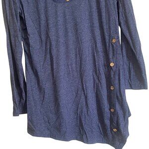 High Low Hem Autumn Button Detail Long Sleeve Tunic Casual Charming Basic Tops L