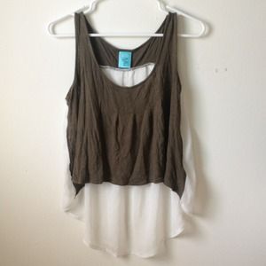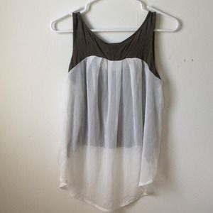 Lovely high low tank top! Bought from Nordstroms. Size XS. Army green color in the front; which shows mid drift. See through material on the back. PRICE NEGOTIABLE.