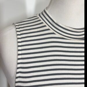 High Neck Black and White Striped Ribbed Sleeveless Dress Sz M
