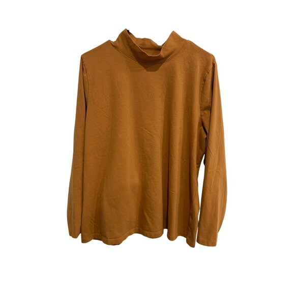 High Neck Long Sleeve Shirt Brown Tan Pullover Neutral Essential Minimalist