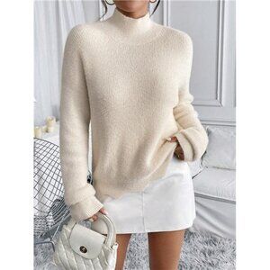 High Neck Loose Fuzzy Pullover Sweaterbusiness Casual Woman,Work Wear,Fall