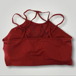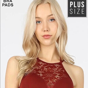 NWT Plus Size Floral Cut Out Bralette with back double strap detail. Beautiful cut out seamless floral design with a high neckline. Perfect addition to any wardrobe. Can be worn alone as a crop top and perfect for layering. Please ask any questions. This does have removable pads. The black is shown for of straps on this style.
