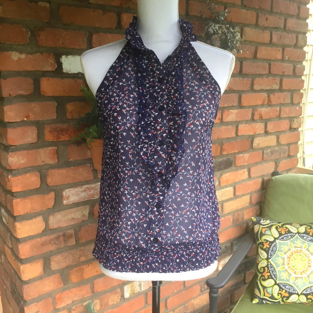 Lightweight and breezy, this red, white, and blue floral tank is perfect for summer outings, BBQs, or 4th of July fun.