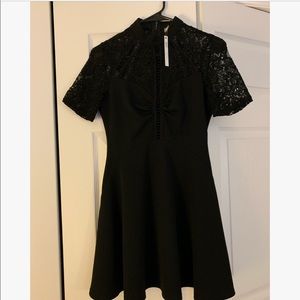 ASOS Black High Neck Skater Dress With Lace Panel — new with tags, size 4.