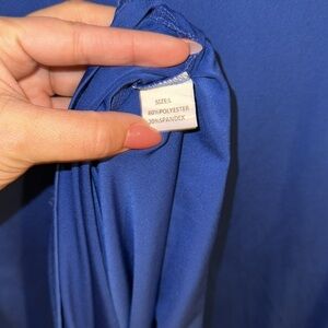 ROYAL BLUE LONG SLEEVE DRESS SIZE LARGE HIGH NECK STRETCHY Missing brand tag PTP 18-23” LENGTH 53”