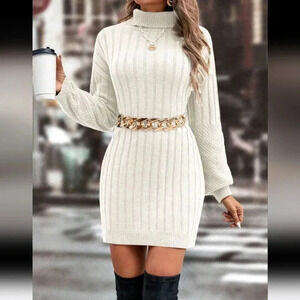 High Neck Solid Color Drop Shoulder Sweater Dress