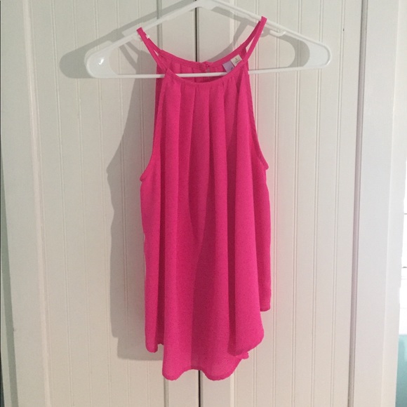 High Neck Hot Pink Top! Size Small. Worn once! Looks very elegant on, perfect for dressing up an outfit!