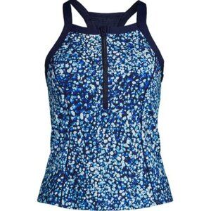 High Neck Zip Front Racerback Tankini Swimsuit Top - Size: 8 Long - NWT