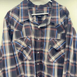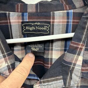 High Noon 3XL Mens Black Red Plaid Chambray Pearl Snap Long Sleeve