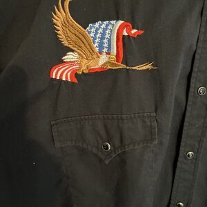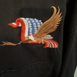 High Noon Shirt Mens 2 XL Black Western Pearl Snap Embroidered Eagle and Flag