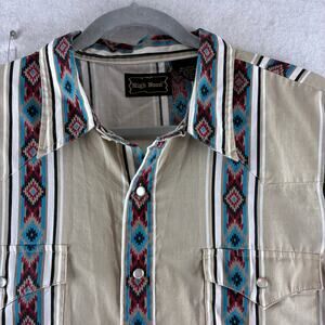 High Noon Vintage Men's 2XLT Southwest Beige Turquoise Western Pearl Snap Shirt