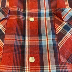 Embrace the timeless appeal of the High Noon Western Shirt, a must-have for any wardrobe seeking a touch of classic Americana. This men's large shirt features a vibrant red and blue plaid pattern, perfect for making a statement whether you're at a casual gathering or out on the town. The woven blend of cotton and polyester ensures both comfort and durability, while the long sleeves and collared neckline offer a traditional cowboy vibe.