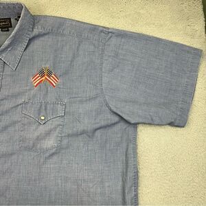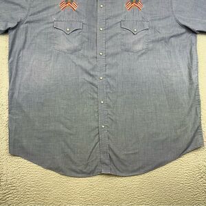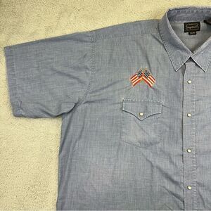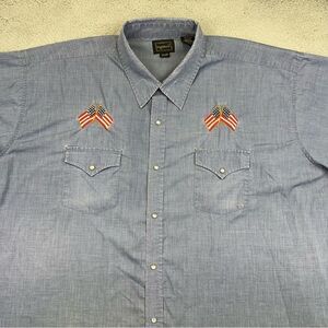 High Noon Western Shirt Mens 3XL Blue Pearl Snap American Flag Embroidered Rodeo