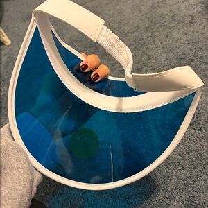 Chic visor with High Noon logo. Features a blue and cream design. Never worn or used.