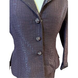 Beautiful 2-piece women’s suit by High Point, size 12. Burgundy reptile fabric with jeweled buttons on blazer. Skirt has back zip. Size 12.