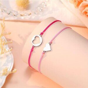 Adjustable size. Here are 2 bracelets. The cut-out heart is for you and the little heart is for your daughter. The big heart size is 4"to 11", and the small heart size is 4"to 10". Come with a sliding knot closure, which allows one to fit any wrist size so that you don't have to worry about the size.