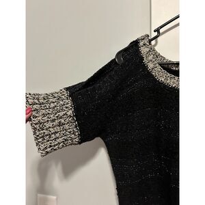 Beautiful cold shoulder sweater in black with gray and silver metallic threads throughout. Flattering fit, excellent condition, gently used. Size Large, 3/4 sleeves. Boutique brand.