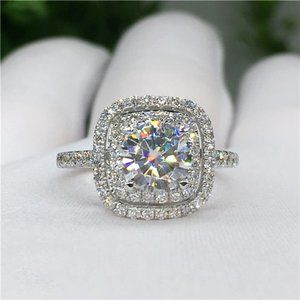 💎High Quality Shiny Round CZ Bling Square Micro Classic Wedding Ring, UNVN12137