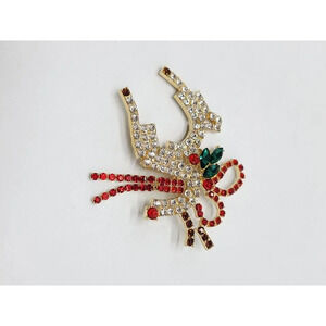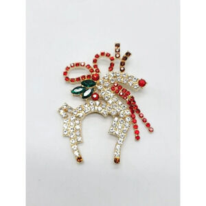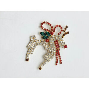 High Quality Signed Large Multi-Color Rhinestone Christmas Reindeer Brooch