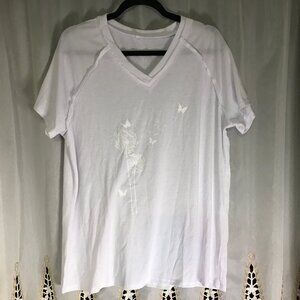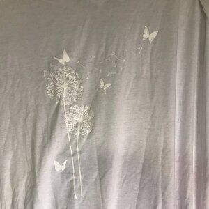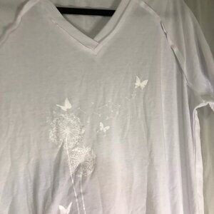 Women's T Shirt with Front White Floral Dandelion and Butterflies print