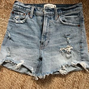 4 inch high rise distressed denim shorts