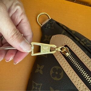 Like New Condition. I notice minor scratches on the main zipper pull (see photo).