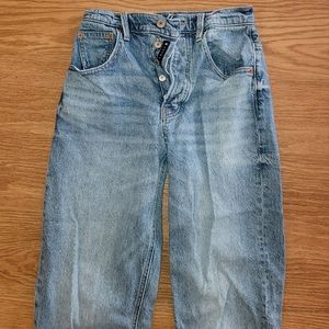 lighter wash, small snag on left knee, otherwise is great gently used condition. I love these jeans so much, but sadly, they no longer fit me :(