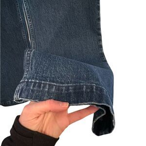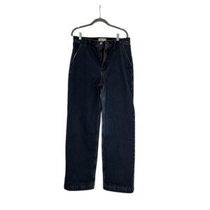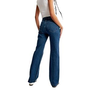 Abercrombie and Fitch High Rise 90s Relaxed Jean. Dark wash with Slash Pockets. Size 31 long. Extremely comfortable but sadly not my size anymore. 99% cotton. Excellent condition. Only worn once. No rips, stains, tears, etc.