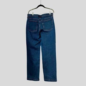 Our classic high rise relaxed jeans in a dark wash, with trouser pockets and tall clean hem. This fit features a 10.5” high rise, is fitted at the waist and hips, and eases at the thigh into relaxed, full-length leg shape. This Jean is made from our vintage stretch fabric which features both an authentic vintage look and contains slight built-in stretch for additional comfort.