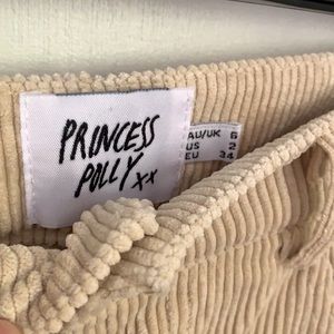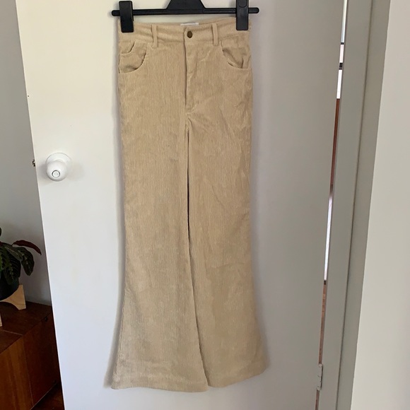 High rise tan cord flare pants from Princess Polly. A true size 2, if you’re a size 3 I do not recommend. Hemmed for someone 5’3.