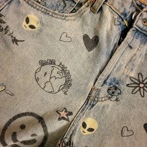 They have really cool graphics printed on them, including smiley faces that look spray painted, earth (gone wondering), aliens, eyes, hearts, peace signs, etc!