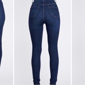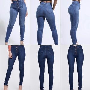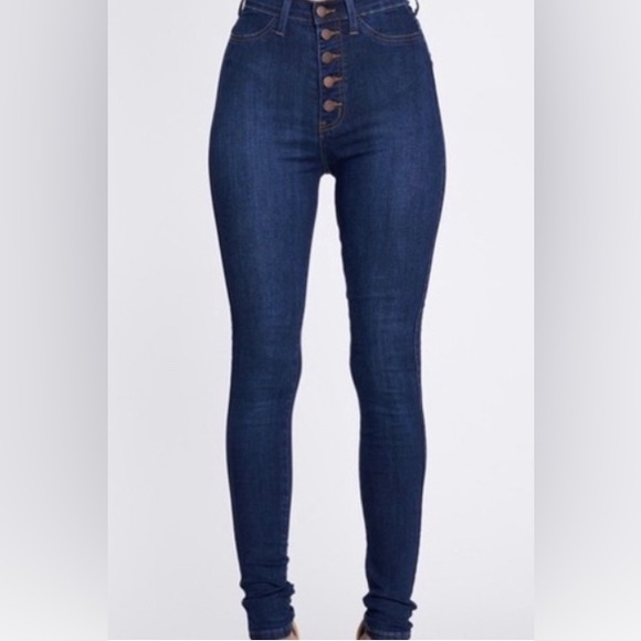 Elevate your style with these high rise blue jeans. Perfect for any occasion, offering both comfort and a flattering fit.