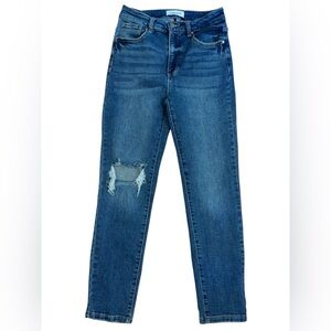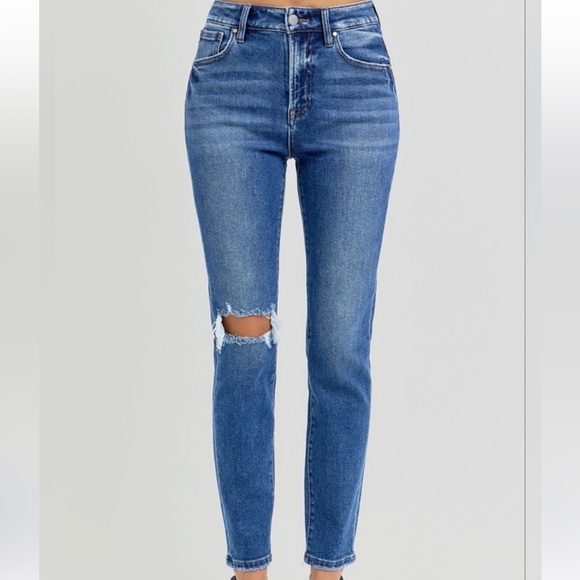 Elevate your style with these high rise blue jeans. Perfect for any casual outing.