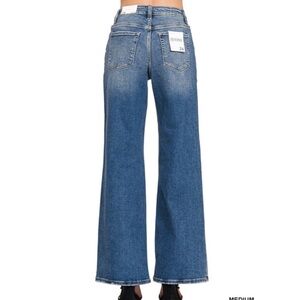 Elevate your style with these high rise blue jeans. Perfect for any occasion, offering comfort and a flattering fit.
