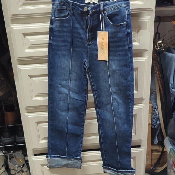 Elevate your style with these high rise blue jeans. Perfect for any occasion, these jeans offer both comfort and fashion.