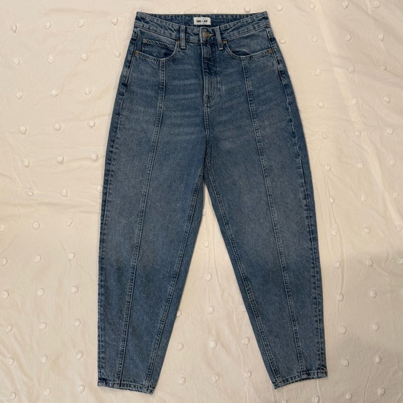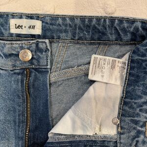 Elevate your style with these high-waisted blue denim jeans. Perfect for any casual outing. Limited addition Lee x H&M barrel fit high waisted jeans. Seam stitch detailing. Size 6. Smoke free and hypoallergenic home.