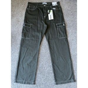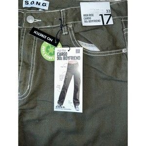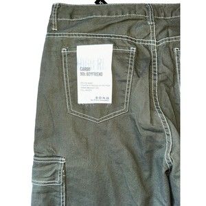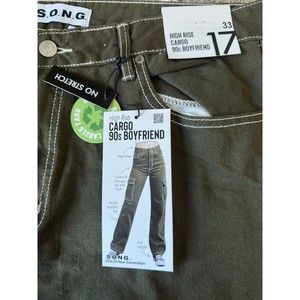 High Rise Cargo 90s Boyfriend Slouchy Baggy Jeans Wide Leg Army Green Size 17/33