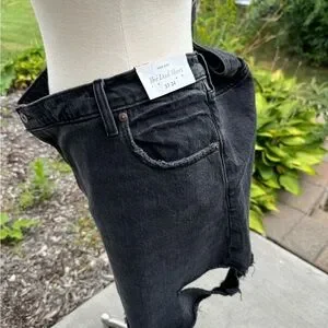 High rise early 2000's-inspired denim with a loose fit throughout the leg, and a 6 inch (15 cm) inseam. The viral fit that eliminates waist gap: Curve Love features additional room through the hip and thigh for curve-hugging comfort. Vintage stretch denim in a black wash, with on-trend baby hem. Imported.