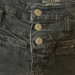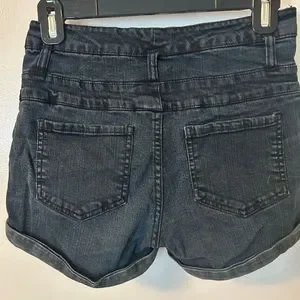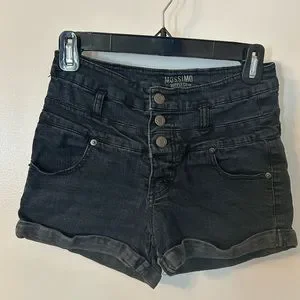 These high rise, short shorts have a 2-inch inseam and a triple-button and zip fly.