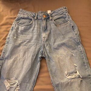 High Rise Denim Ripped Jeans