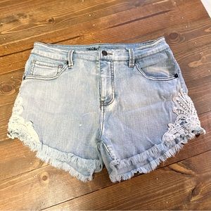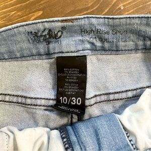 Mossimo high-rise denim shorts with cute embroidered pattern on sides.