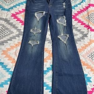 High Rise Distressed Flared Jeans
