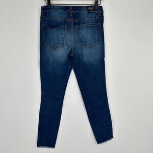 High Rise Distressed Raw Step Hem Ankle Denim Jeans Womens Pockets Stretch 7/27