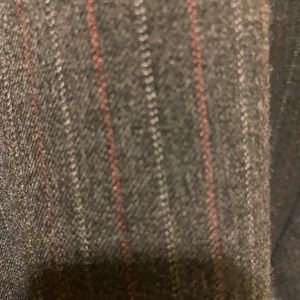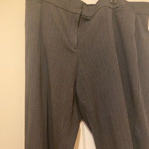 Pin Stripe high rise dress pants grey with a bone and cranberry strip with front and rear pockets. Built in tummy control and extremely comfortable.