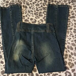 Dark wash High rise flare jeans with a touch of stretch, used once, if you want exact measurements lmk
