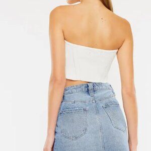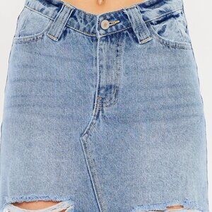 This denim mini skirt is super cute and stylish featuring a high waist with a frayed hem in a medium wash!