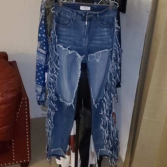 High Rise cut out fringe denim...has stretch sz L...never worn. New w/o tags